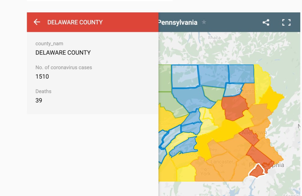 While Chester County has 532 cases and 15 deaths, Delaware County has had 1510 cases and over 39 deaths. Please be careful, stay home, and if you go out, Please wear a mask.
