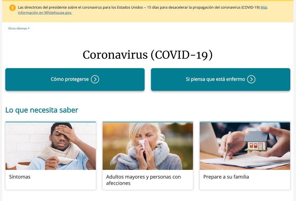 Esta es una imagen del sitio de los CDC con un enlace a la página correspondiente
